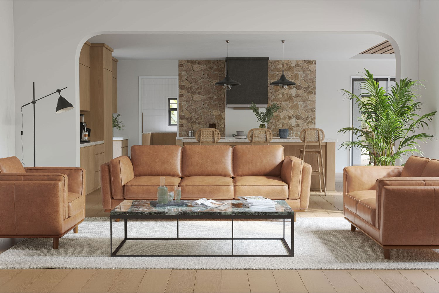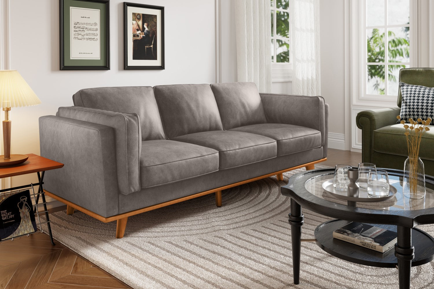 Experimente la fusión perfecta del diseño moderno con nuestra Colección de Cuero Artisan. El sofá de Cuero Artisan con base de Madera de Aliso complementa a la perfección cualquier espacio gracias a su diseño de primera calidad. Su estética minimalista moderna trasciende las tendencias, creando un estilo atemporal que se vuelve aún más cautivador con el tiempo. Su rico color, complementado con las patas de Madera de Aliso, atraerá la atención de cualquiera que contemple su belleza y se siente en sus exquisitos cojines de espuma de alta resiliencia. Convierta su hogar en una obra maestra atemporal con el Sofá de Cuero Artisan.