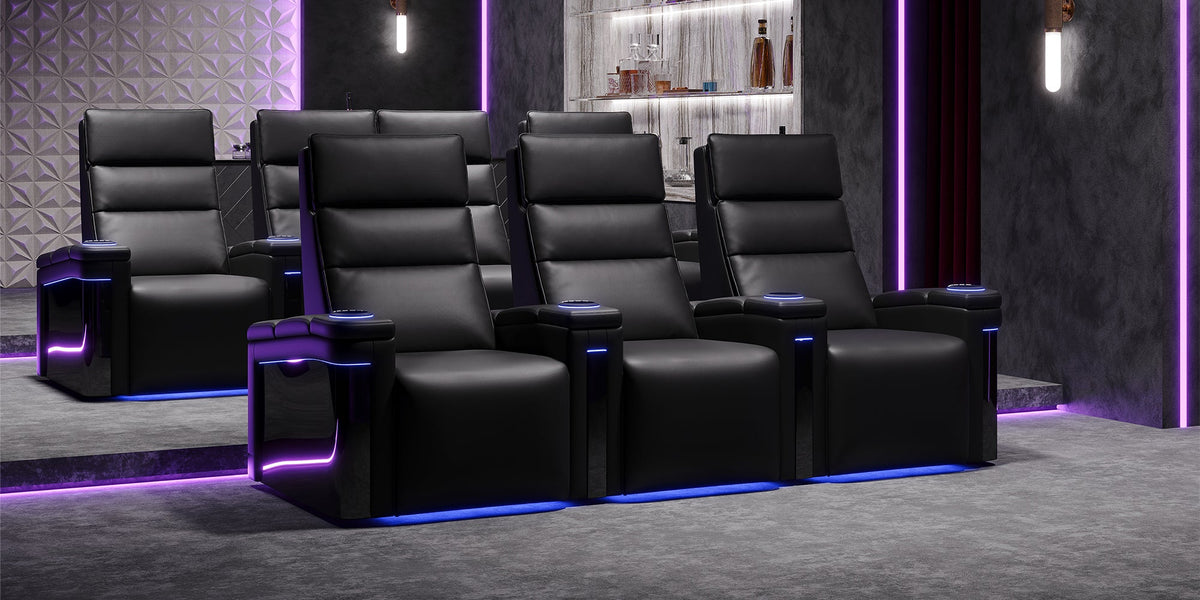 Diseñado para quienes buscan lo mejor, el Monza es una obra maestra de comodidad y estilo. Su elegante diseño, con detalles de fibra de carbono en los brazos, transmite una sensación de velocidad y sofisticación moderna, garantizando una larga durabilidad. Revestido en cuero napa semianilina mate premium 15000, el Monza te mima con una comodidad excepcional. Al mismo tiempo, sus funciones motorizadas ofrecen una experiencia visual personalizada. Más allá de su estética, el Monza cuenta con un panel de control con memoria para ajustes fluidos e iluminación LED RGB inmersiva, que transforma tu cine en casa en un paraíso de lujo. Deja que el Monza redefina tu espacio de entretenimiento, donde cada momento se convierte en una experiencia cinematográfica inolvidable.