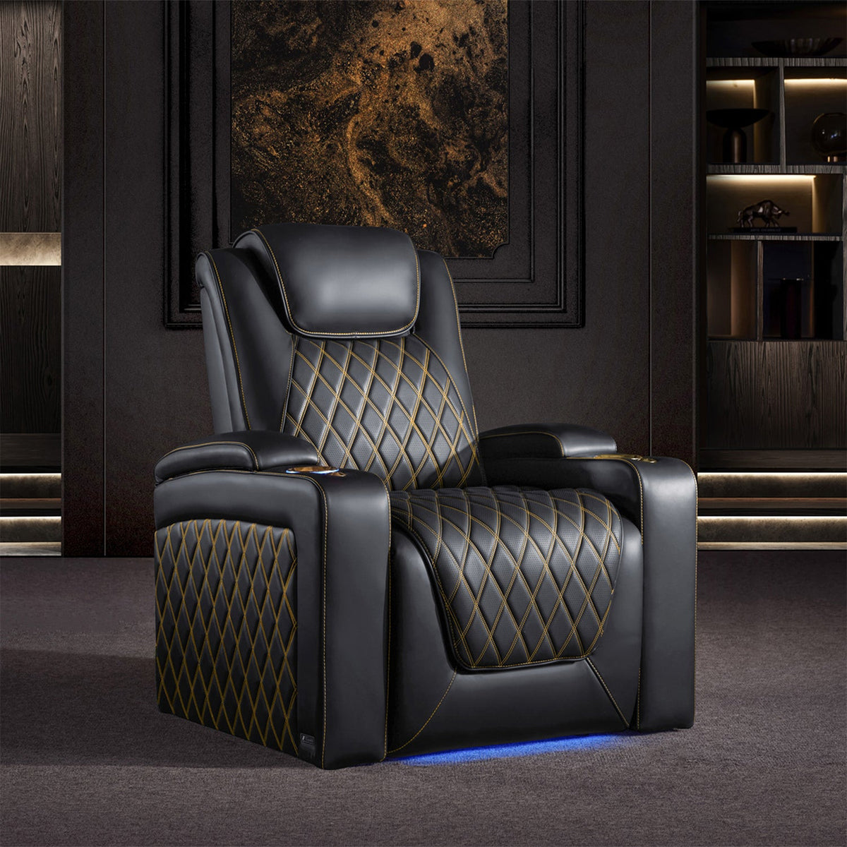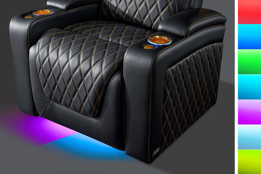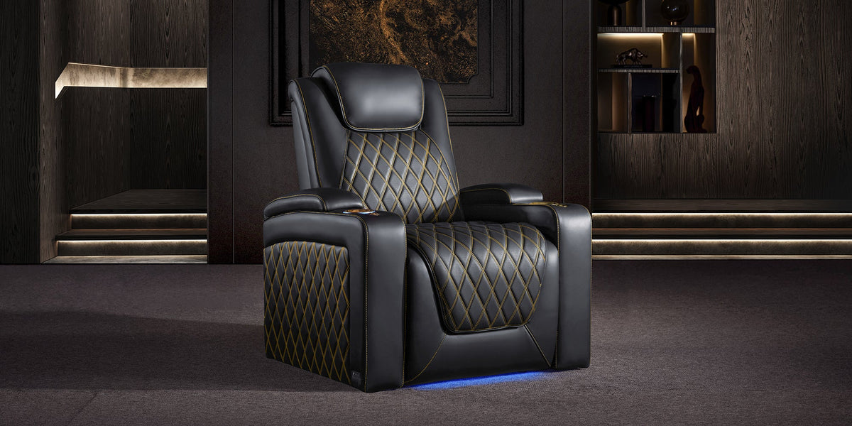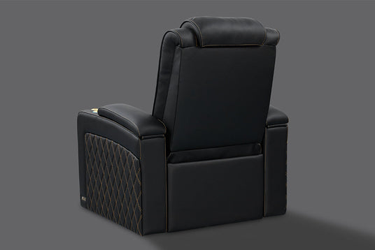 Valencia Theatre Seating ha rediseñado el asiento del cine en casa Oslo para brindarte la mejor experiencia para ver películas. Hemos agregado altura al respaldo del asiento para brindarle a su cuello y hombros una felicidad ergonómica inquebrantable. Con la elección de oro o plata Con costuras en forma de diamante francés, el cuero perforado eleva estéticamente su espacio y emula el rico atractivo de un automóvil de lujo.