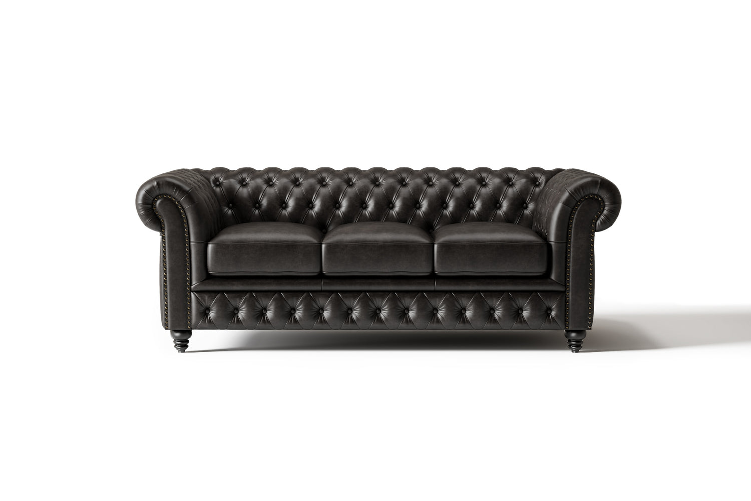 El exquisito sofá Parma de piel anilina es una auténtica obra maestra de refinada elegancia. Esta impresionante pieza luce cojines de respaldo capitoné, bellamente realzados por brazos altos, acolchados y capitoné, y patas de madera maciza. El majestuoso ribete de tachuelas en bronce, aplicado a mano con gran detalle, añade un toque final de sofisticación al delinear los brazos y los rieles delanteros. Sumérjase en el lujo con nuestro magnífico sofá de tres plazas, que ofrece una amplitud que se adapta a todos sus deseos de descanso. Este sofá ejemplifica la combinación perfecta de exquisita artesanía, comodidad duradera y elegancia atemporal, convirtiéndolo en una adición excepcional a su sala de estar.