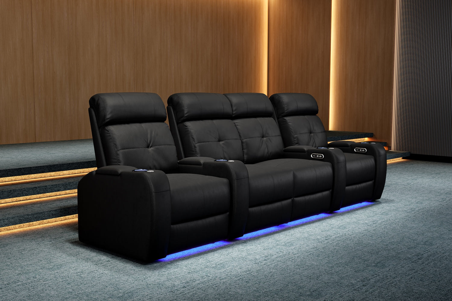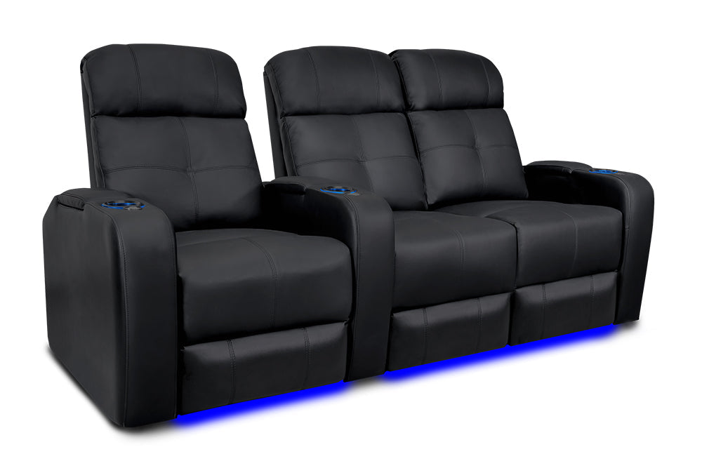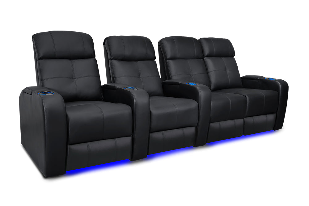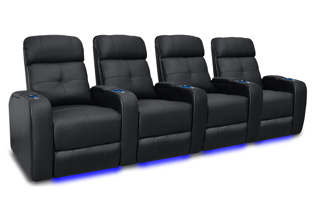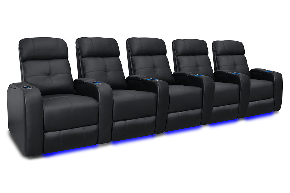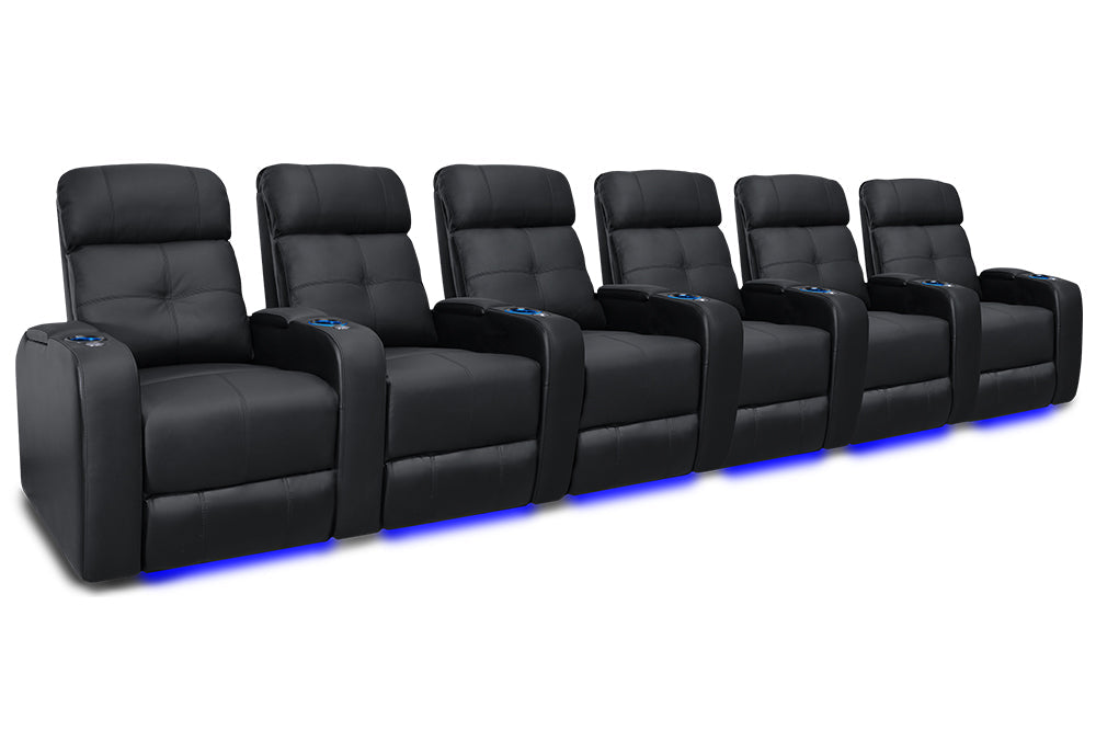 La elegancia del Verona ofrece una experiencia de cine en casa verdaderamente única para cada ocasión. Con portavasos LED, iluminación ambiental en la base, cuero 9000 de primera calidad en todas las superficies para sentarse, una salida USB y mecanismos reclinables motorizados, ¡el Verona creará una experiencia de cine en casa memorable en todo momento!