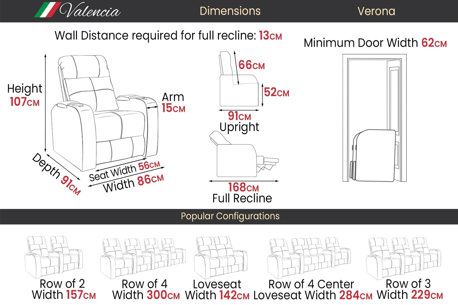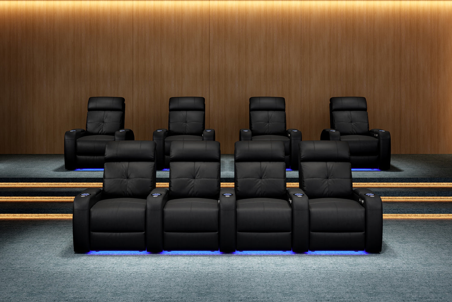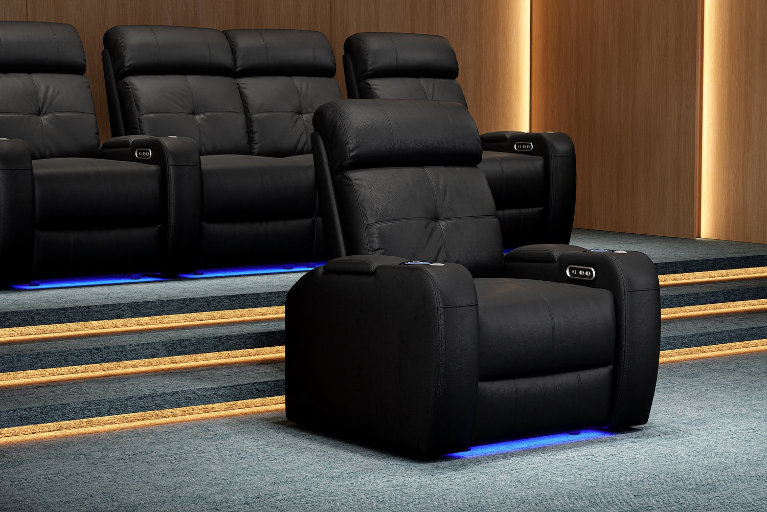 La elegancia del Verona ofrece una experiencia de cine en casa verdaderamente única para cada ocasión. Con portavasos LED, iluminación ambiental en la base, cuero 9000 de primera calidad en todas las superficies para sentarse, una salida USB y mecanismos reclinables motorizados, ¡el Verona creará una experiencia de cine en casa memorable en todo momento!