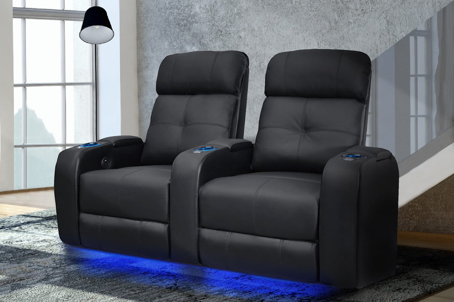Comodidad ergonómicaDiseñado pensando en el cuerpo humano, los asientos de cine en casa Valencia están diseñados para brindar comodidad, combinados con un diseño elegante creado para brindar una satisfacción sin igual. Almacenamiento de brazoEl almacenamiento oculto en el brazo permite ocultar controles remotos y tabletas. Portavasos LEDPortavasos LED súper elegantes incorporados con brillo suave ambiental, y un puerto USB está incluido en el sistema de control táctil para cargar sus teléfonos y tabletas. Cuero de grano superior 9000El cuero de grano superior 9000 de primera calidad cubre todas las superficies de los asientos y los reposabrazos. Reclinación eléctricaUn motor silencioso y suave permite una experiencia reclinable silenciosa y el diseño que abraza la pared se mantendrá cerca de la pared para garantizar que la reclinación de su silla ocupe el mínimo espacio. Luz ambiental LEDLa base de luz ambiental LED crea un ambiente de cine en casa que le permite disfrutar de su noche de cine.