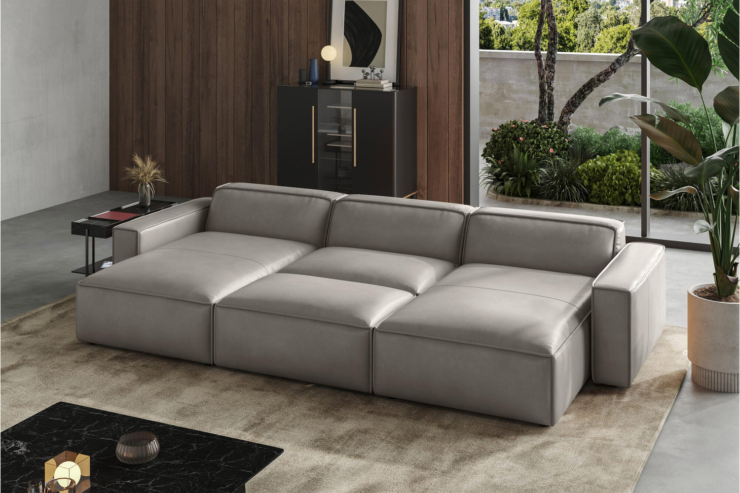 Créez l'espace détente idéal avec l'ensemble modulaire Nathan, un design classique en cuir aniline de haute qualité qui s'intègre à tous les décors. Les sièges semi-fermes offrent un confort incomparable, tandis que leur design polyvalent permet de se détendre en toute tranquillité. Personnalisez votre configuration en ajoutant des éléments individuels à l'ensemble trois pièces.