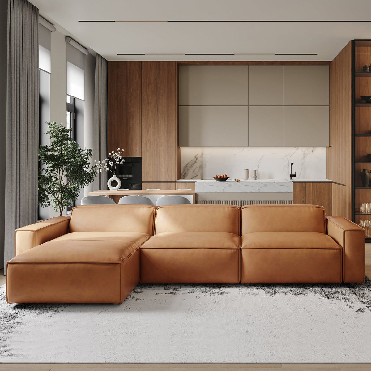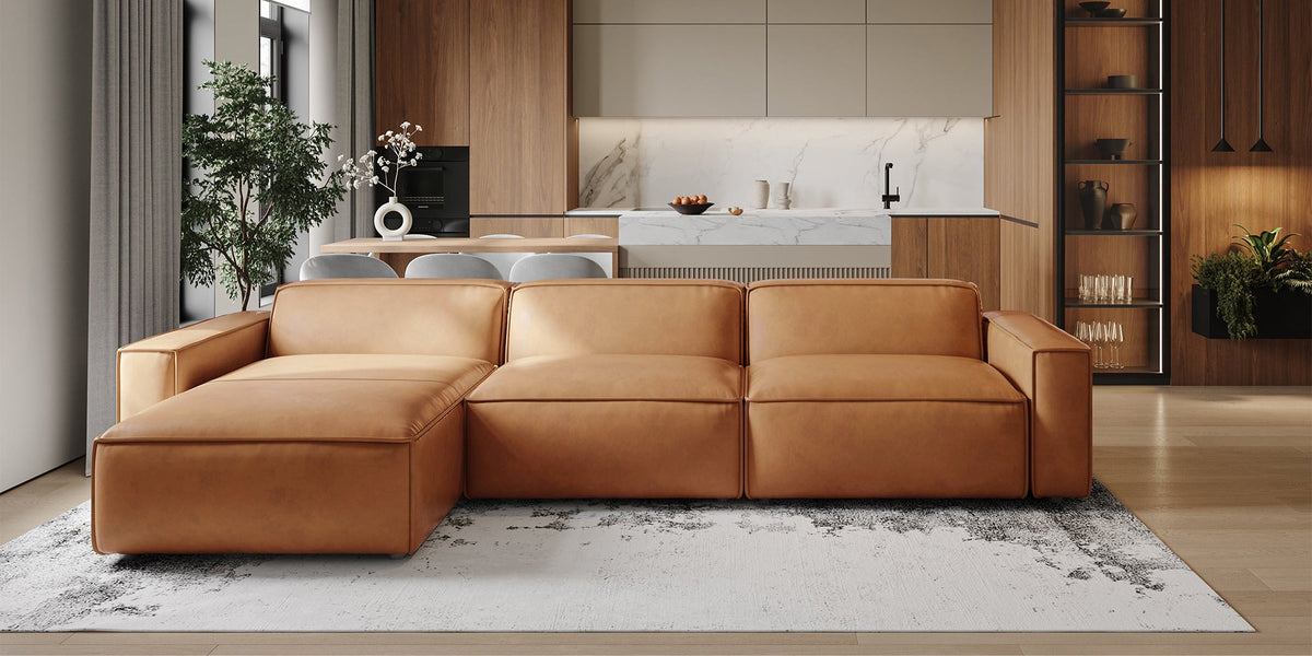 Créez l'espace détente idéal avec l'ensemble modulaire Nathan, un modèle classique en cuir aniline de haute qualité qui s'intègre à tous les décors. Les sièges semi-fermes offrent un confort incomparable, tandis que leur design polyvalent permet de se détendre en toute tranquillité. Personnalisez votre configuration en ajoutant des éléments individuels à l'ensemble trois pièces.