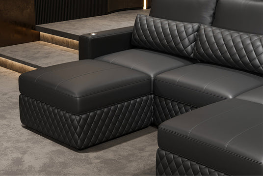 Découvrez le canapé d'angle Pisa Ultimate en cuir : un chef-d'œuvre de design moderne où luxe et confort se rencontrent ! Fabriqué avec précision et élégance, ce canapé est confectionné en cuir nappa italien semi-aniline pleine fleur 20000 de la plus haute qualité, pour un toucher luxueux et une durabilité à toute épreuve. Plongez dans une détente absolue grâce à nos coussins garnis de plumes et de duvet de qualité supérieure, offrant un confort et un soutien inégalés. La structure en bois séché au four garantit une stabilité durable, tandis que les coussins de dossier amovibles offrent une polyvalence pour une détente personnalisée. Sublimez votre espace de vie avec le canapé d'angle Pisa Ultimate en cuir, symbole de sophistication. Plongez dans un luxe incomparable et affirmez votre style. Votre intérieur mérite le meilleur ; offrez-vous l'extraordinaire.