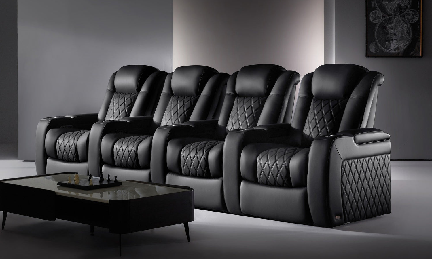 Vivez l'expérience Toscane intensifiée. L'édition Ultimate Luxury Heat & Air Ventilation est le leader incontesté des sièges home cinéma. Plongez dans le luxe avec le cuir Nappa italien semi-aniline 20000, un cran au-dessus de notre cuir Nappa pleine fleur haut de gamme 11000. Sa finition mate, douce et onctueuse, est d'une perfection et d'un luxe indéfectibles. Parallèlement à l'esthétique raffinée de l'intérieur d'une Bentley, le cuir perforé et les coutures en losanges français offrent une respirabilité optimale pour des performances optimales. Conçu avec une finition exceptionnelle pour rehausser le luxe de votre intérieur, son design soigné rehausse l'élégance de votre home cinéma.