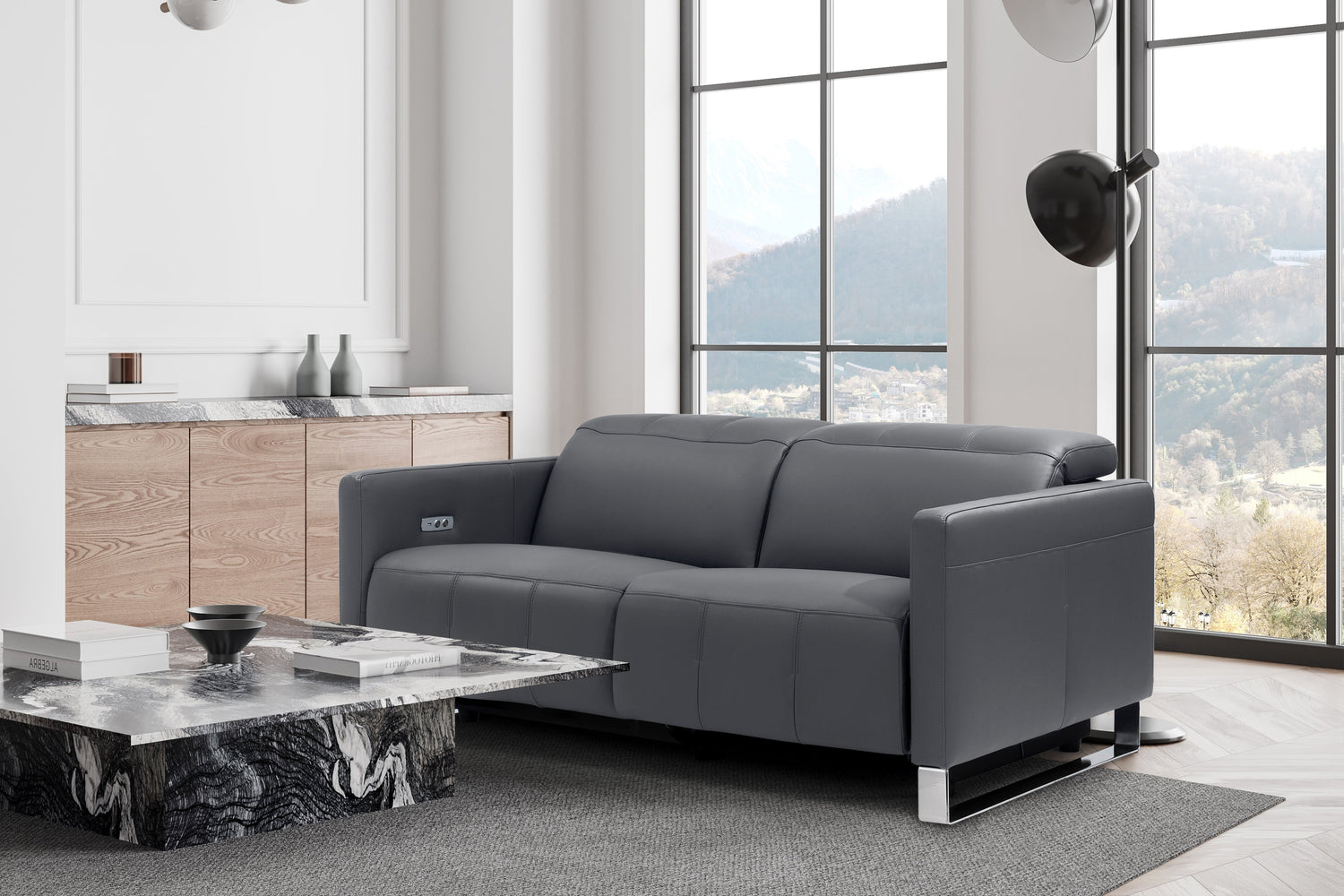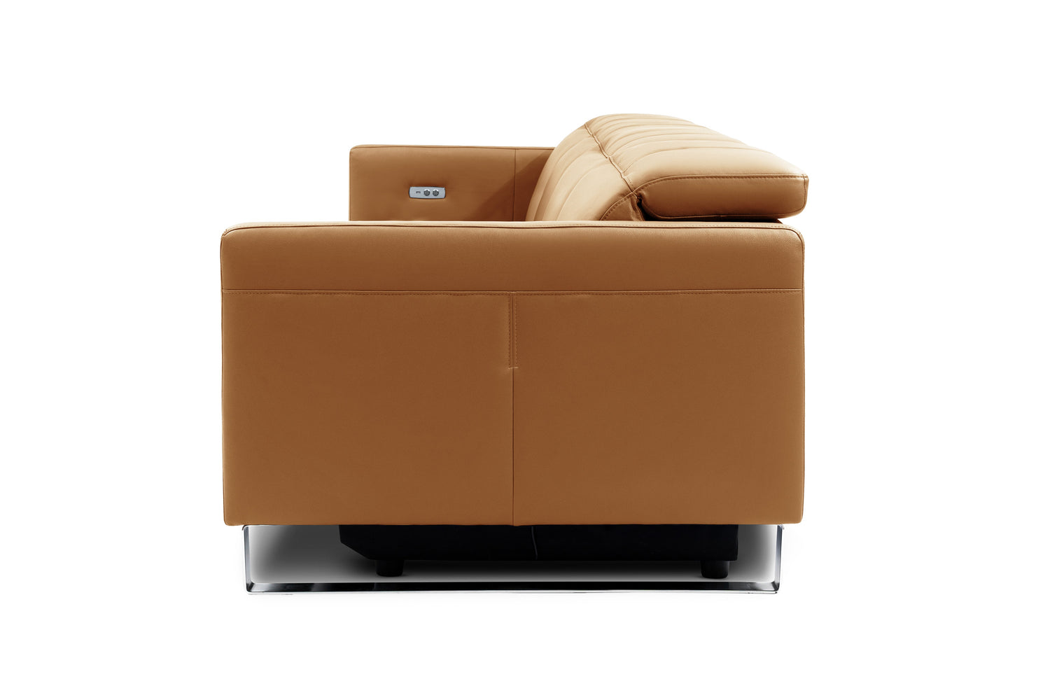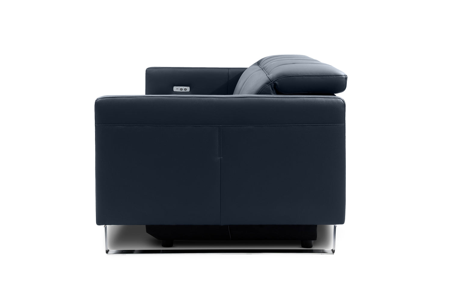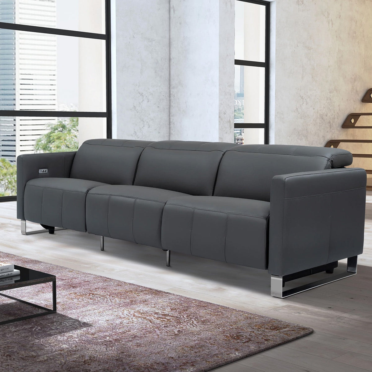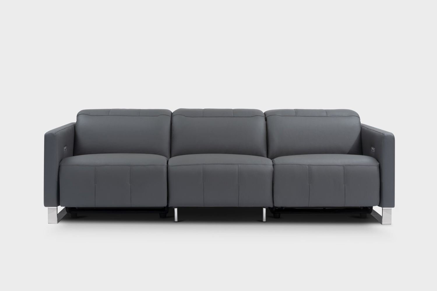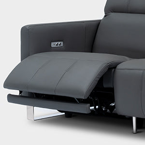 Built for luxury, this power reclining sofa lets you kick back in comfort and style. Crafted with precision, this sofa blends functionality and luxury for an elevated relaxation experience. Wrapped in Top-Grain Leather and supported by a solid Wood frame with steel legs, it exudes timeless allure and stability. Sink into ultimate comfort with Foam + Polyester cushion fillings. The left and right seats are ingeniously designed as Power Recliners with manual adjustable headrests for customizable relaxation. Transform your living room into a haven of comfort and style with Isla. Whether it's unwinding after a long day or enjoying a movie night, this sofa's power recliners ensure you find your perfect comfort zone.