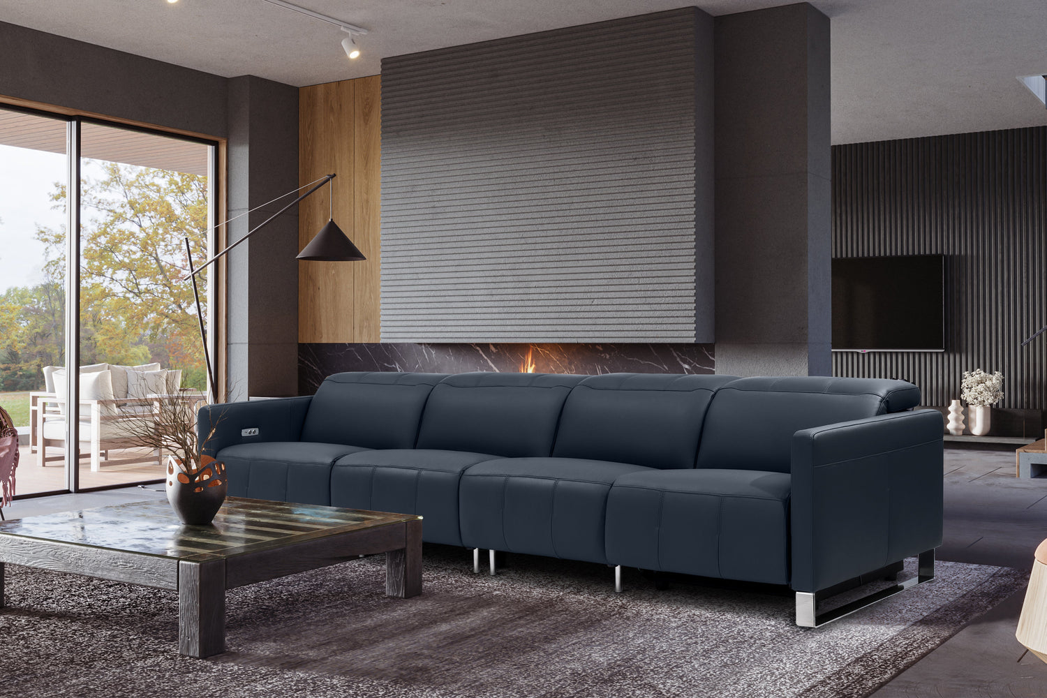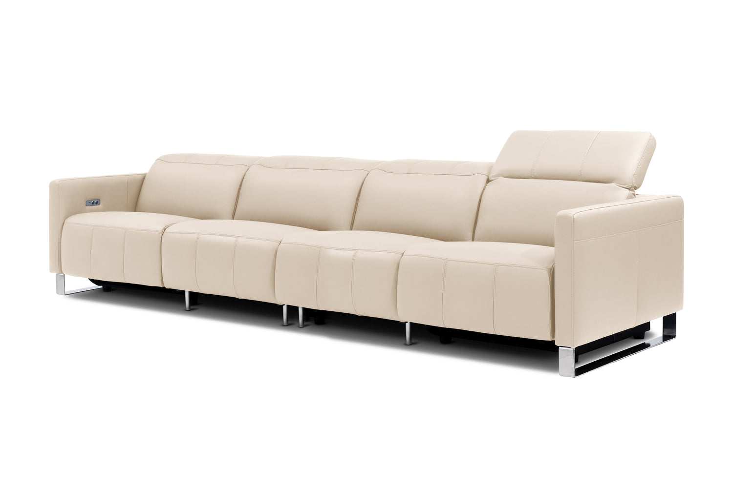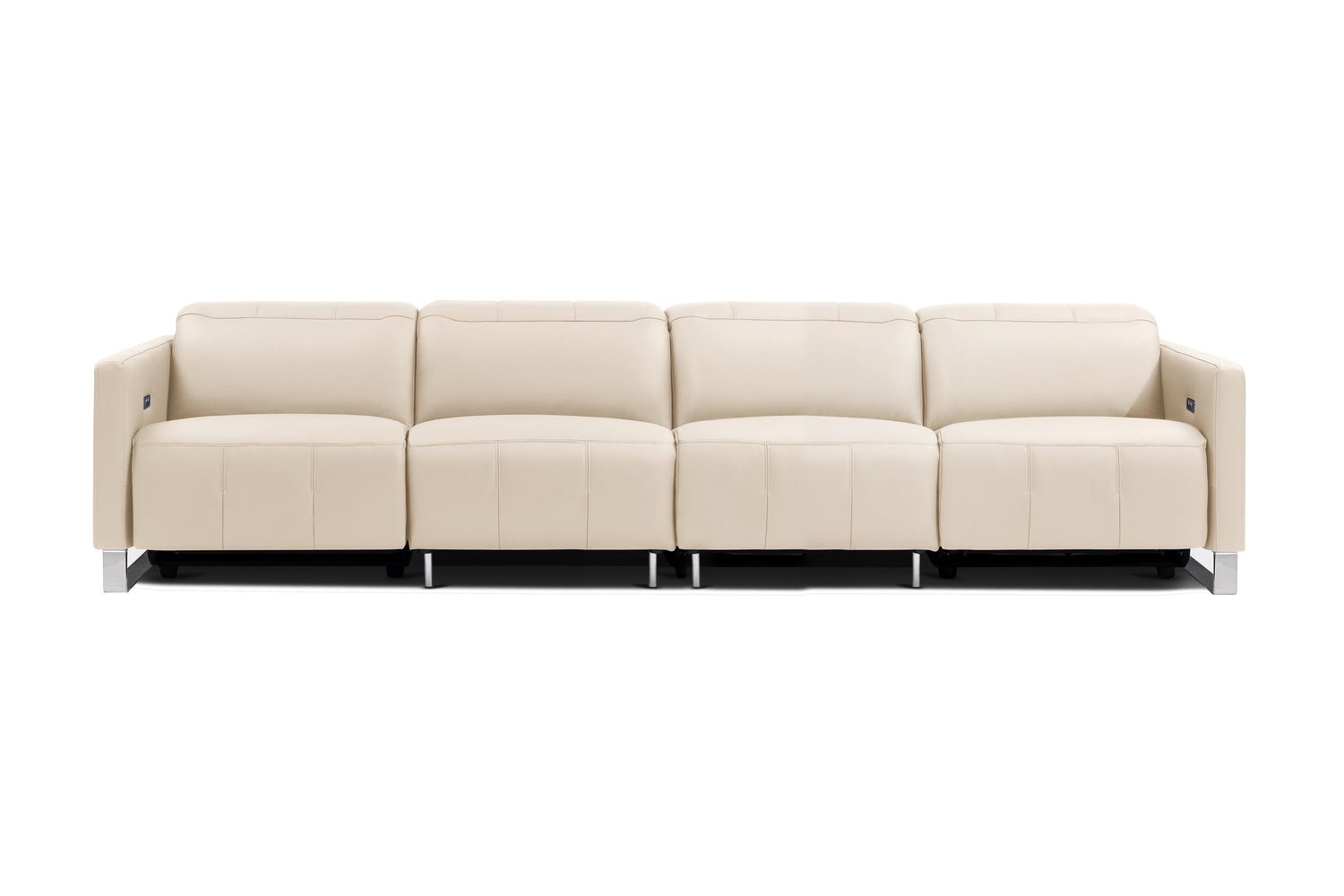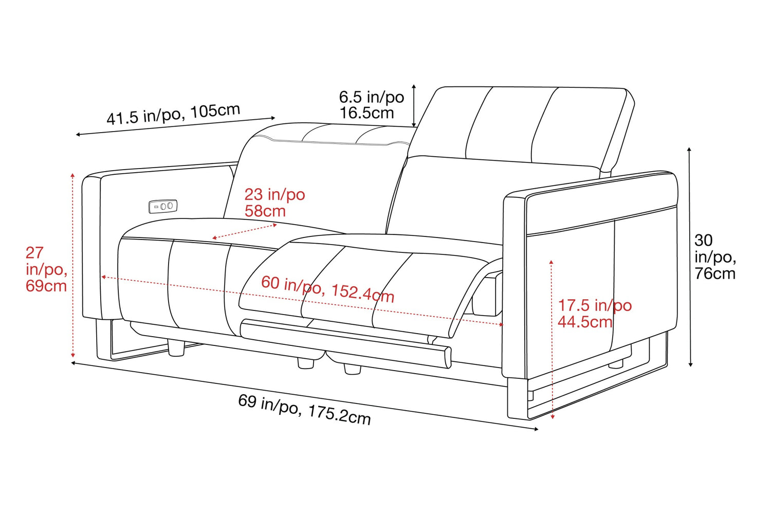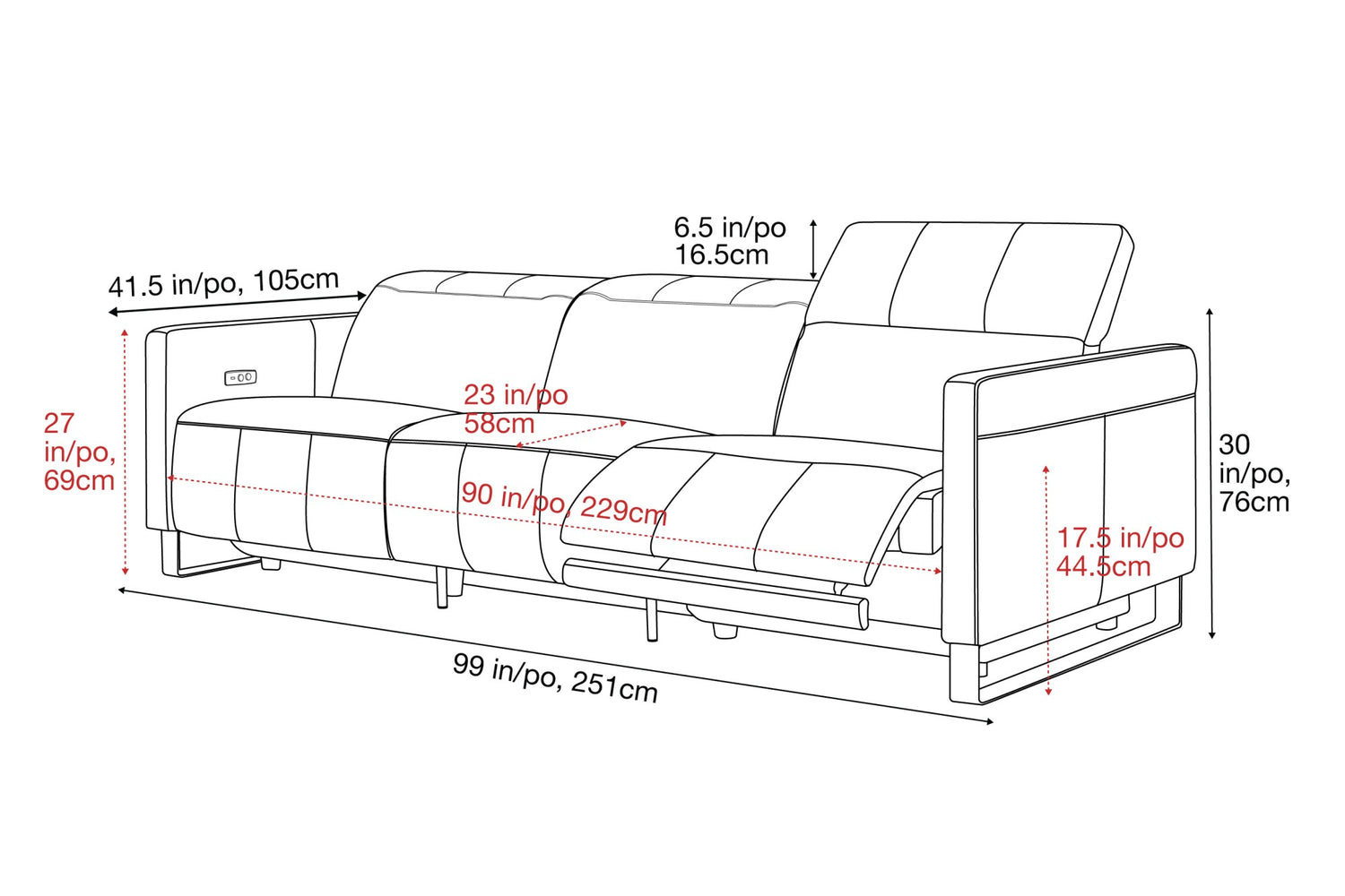 Built for luxury, this power reclining sofa lets you kick back in comfort and style. Crafted with precision, this sofa blends functionality and luxury for an elevated relaxation experience. Wrapped in Top-Grain Leather and supported by a solid Wood frame with steel legs, it exudes timeless allure and stability. Sink into ultimate comfort with Foam + Polyester cushion fillings. The left and right seats are ingeniously designed as Power Recliners with manual adjustable headrests for customizable relaxation. Transform your living room into a haven of comfort and style with Isla. Whether it's unwinding after a long day or enjoying a movie night, this sofa's power recliners ensure you find your perfect comfort zone.