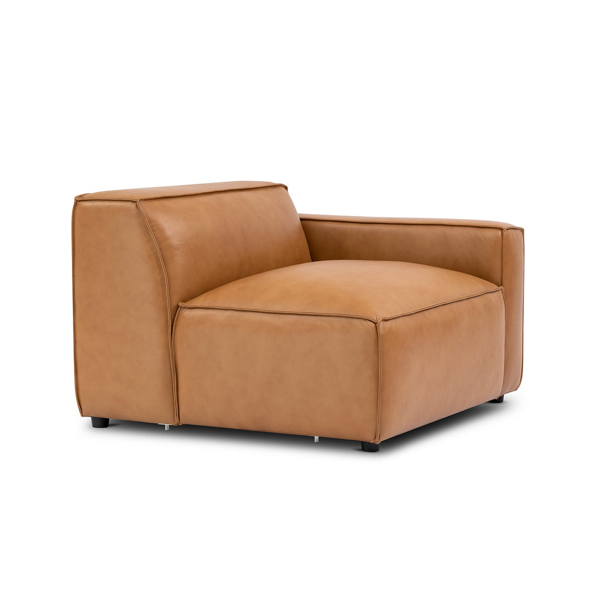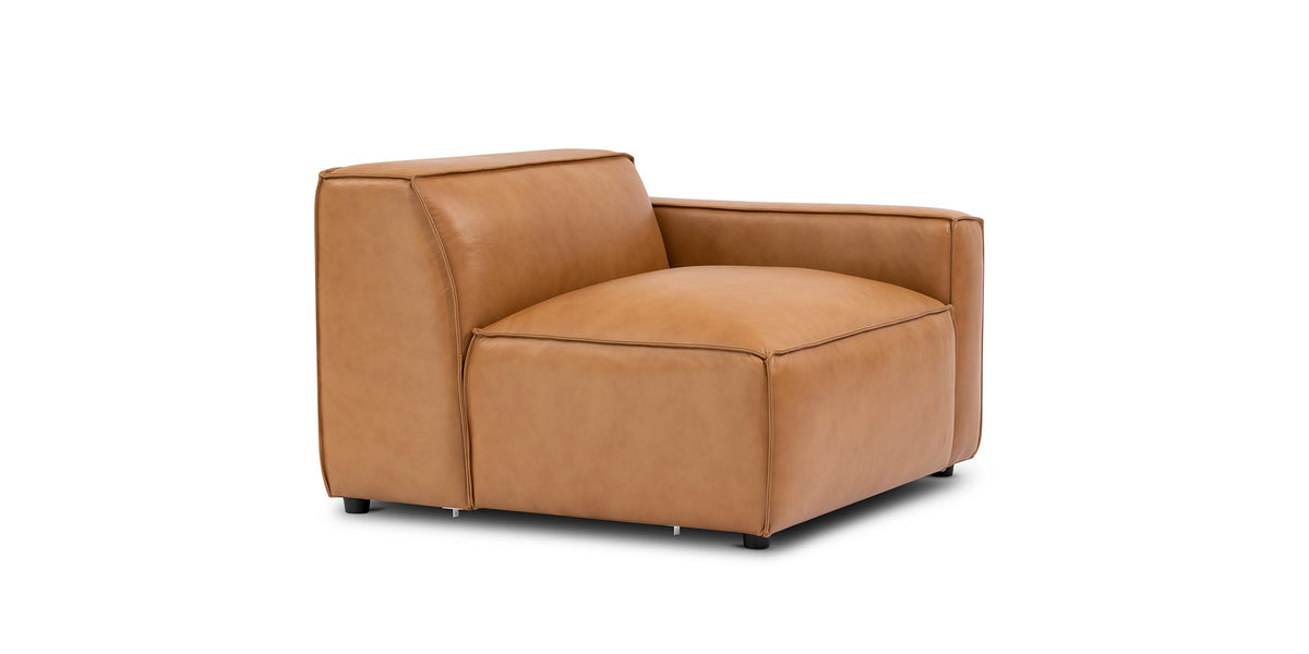 Introducing Nathan Leather Right Arm Sofa Module - the perfect addition to any décor. With its classic design, luxurious full aniline leather upholstery, and comfortable semi-firm seats, you can snuggle up and enjoy the plush feather padding while lounging peacefully. Customize your configuration by adding individual pieces from the same collection.