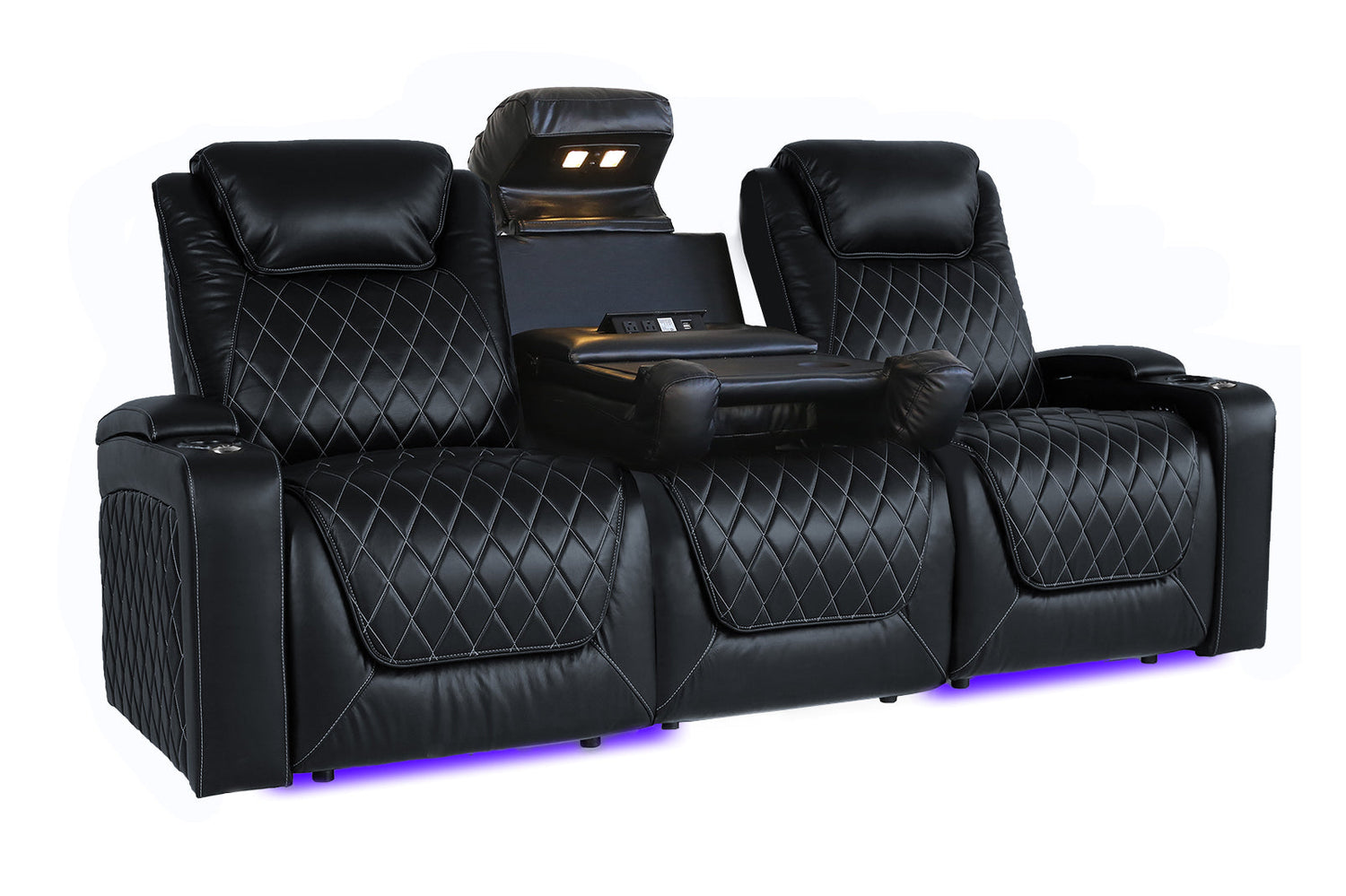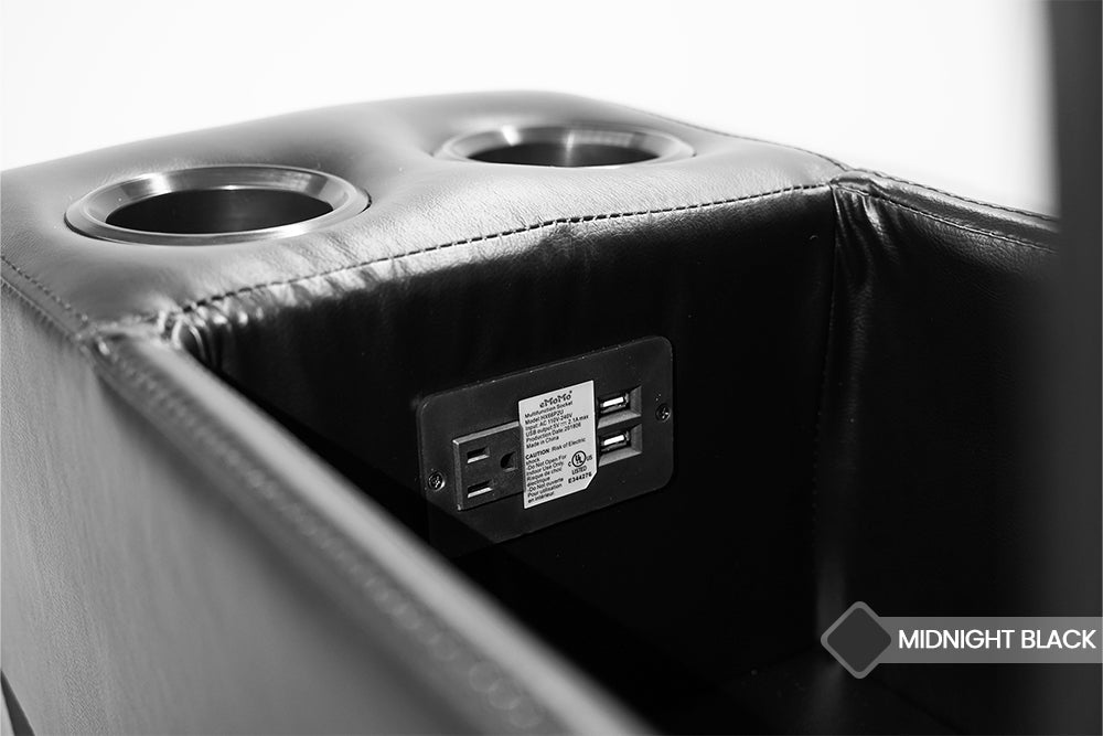 What makes movie night a luxurious experience? Is it the wine, the cozy atmosphere, the supple feeling of leather as it supports your back as you recline your chair to better enjoy the movie experience? The Oslo Console can provide you a luxurious experience that will take your movie night to the next level of comfort. The Oslo Console will become the centerpiece of your home theater room. The classy finishes and neat design will be heightened by the cozy cushions, pneumatic lumbar support, and powered headrest, making it easier for you to drop down and relax every time. Coupled with the drop-down center console which provides you with additional cup holders, lights, and plugs, your evenings will never be the same again. Both the left and right end seats are full power recliners with power lumbar and headrest adjustability.