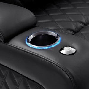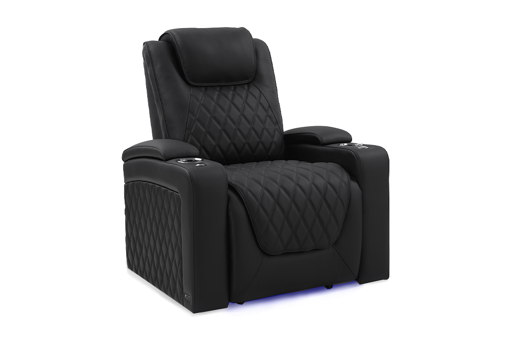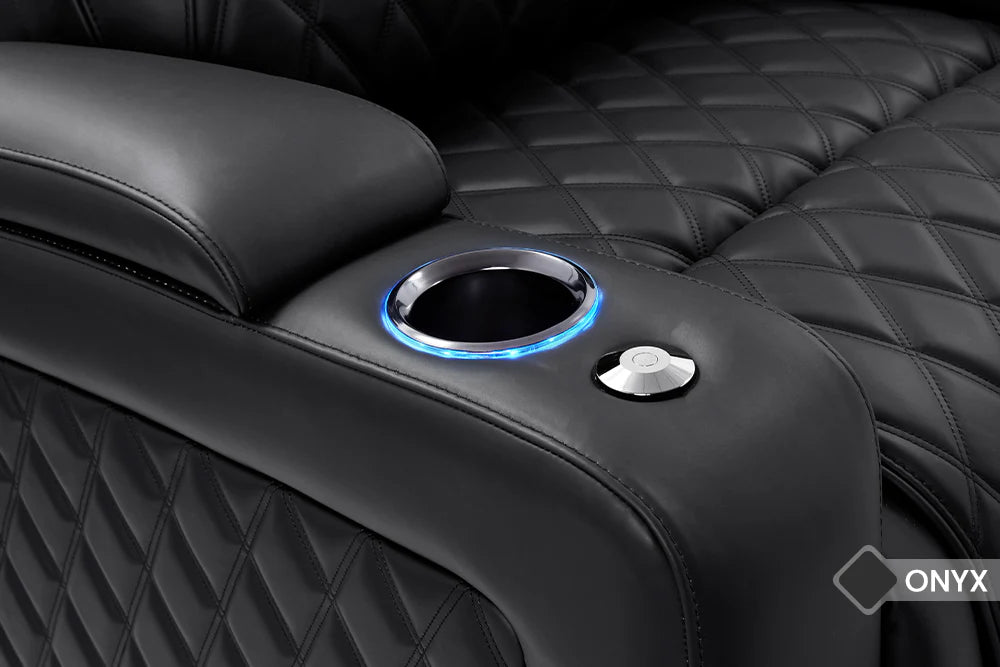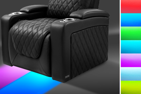 Fall into the lap of luxury with the Oslo Luxury. Lending itself to the masterful movie maven or seasoned audiophile, the Oslo will take you to new heights of enjoying your chosen entertainment. The timeless double diamond french stitching inlaid to the matte Semi-Aniline Italian Nappa Leather 20000 exudes luxury in any space it is placed into. Ensuring no detail was left behind… you can expect to experience a quiet motorized headrest, lumbar and recline. To truly make the Oslo fit into any aesthetic, 7 cycle RGB LED lights illuminate the cup holders and base of each seat. Coming equipped with an unobtrusive controller panel, USB-A and USB-C charging ports for all devices.