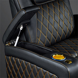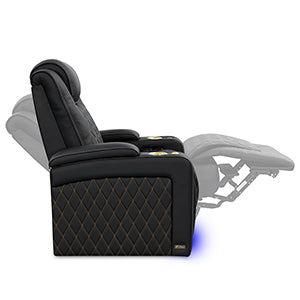 Valencia Theater Seating has redesigned the 2025 Oslo home theater seat to deliver you the ultimate movie watching experience. We have added height to the seat-back to gift your neck and shoulders unwavered ergonomic bliss. With the choice of gold or silver French Diamond stitching, the perforated leather aesthetically elevates your space and emulates the rich allure of a luxury car.