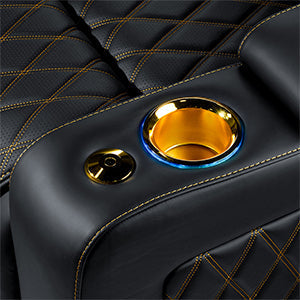 - The gold- or silver-finished cup holders complement the stitching, creating a cohesive and luxurious look.