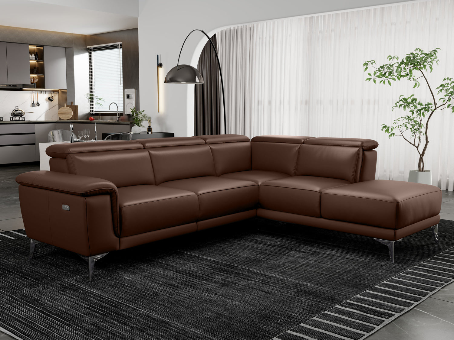 The Pista sectional embodies the ideal fusion of comfort and luxury, featuring a stunning top-grain leather construction that captures the essence of home. Its exquisite craftsmanship defines the true meaning of coziness and elegance. Equipped with adjustable headrests and an electric recliner function, and a convenient USB charging feature, the Pista effortlessly introduces a contemporary flair to your home décor, enhancing its overall style and functionality.