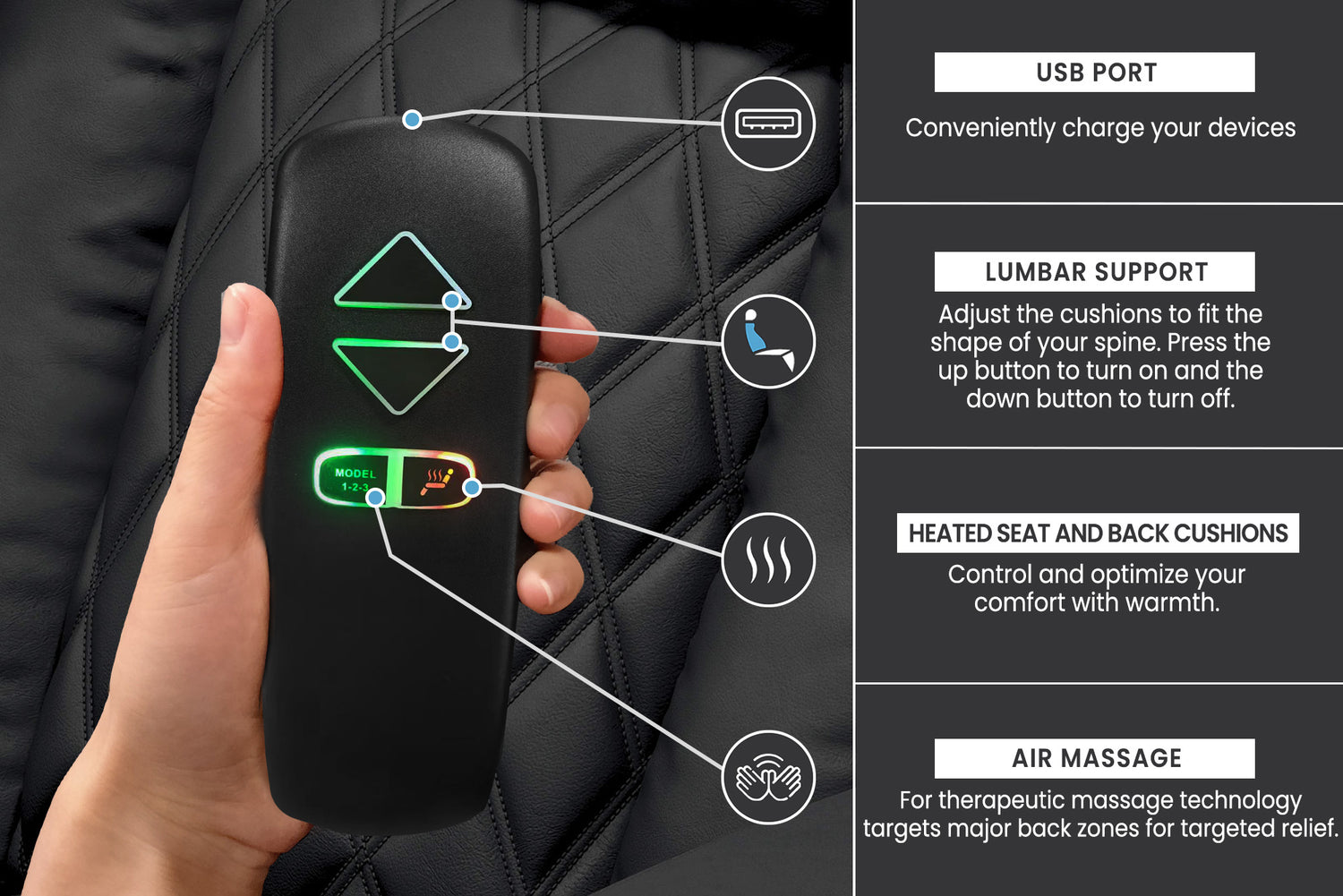 - The upgraded heated seating cushion delivers soothing warmth, while enhanced therapeutic massage technology targets key lower back zones, offering focused relief and more profound relaxation for a truly indulgent home theatre experience.