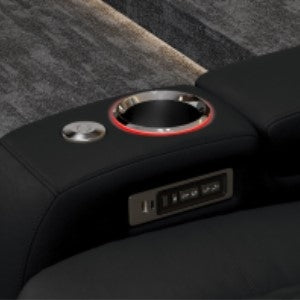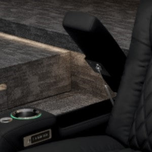 - Armrest Hidden Storage with air pistons ensures smooth, seamless access to trays, remotes, and tablets.